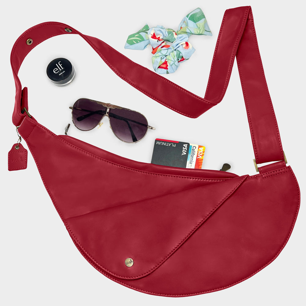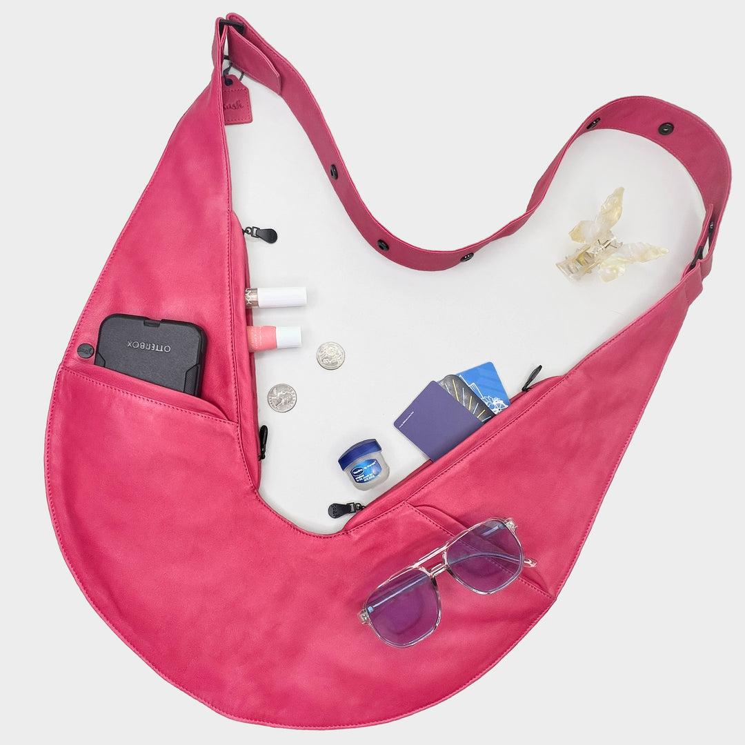 The patented design was created by a woman, for women. The pockets are perfect for everyday items and stacked to evenly distribute the weight. This unique design is what makes the Sash Bag so organized, comfortable, and more than meets the eye!