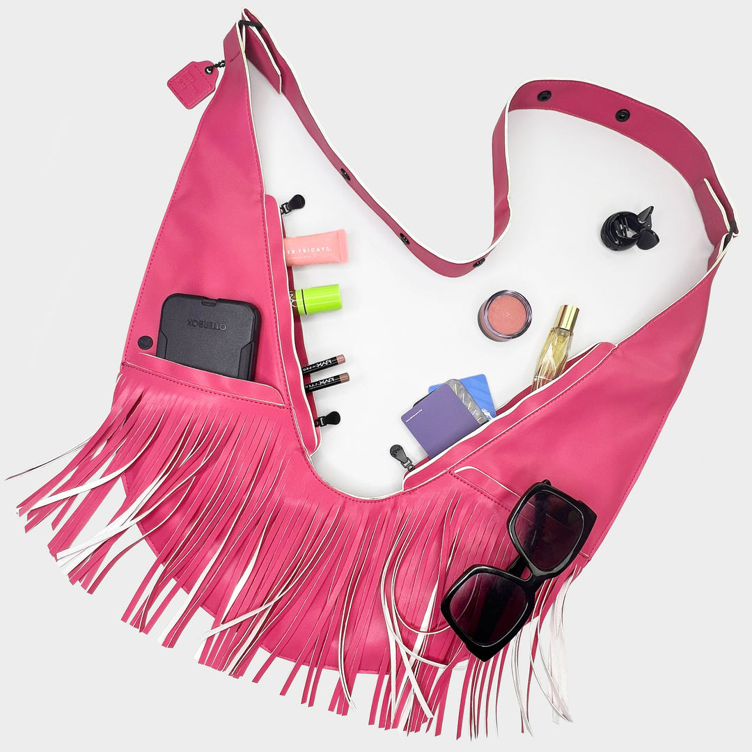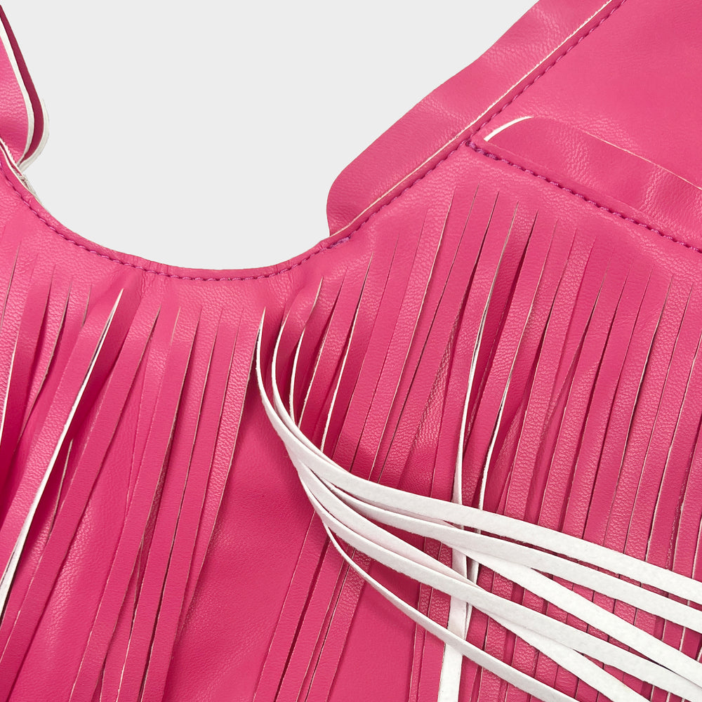 Star Pink Faux Leather Fringe Sash Bag