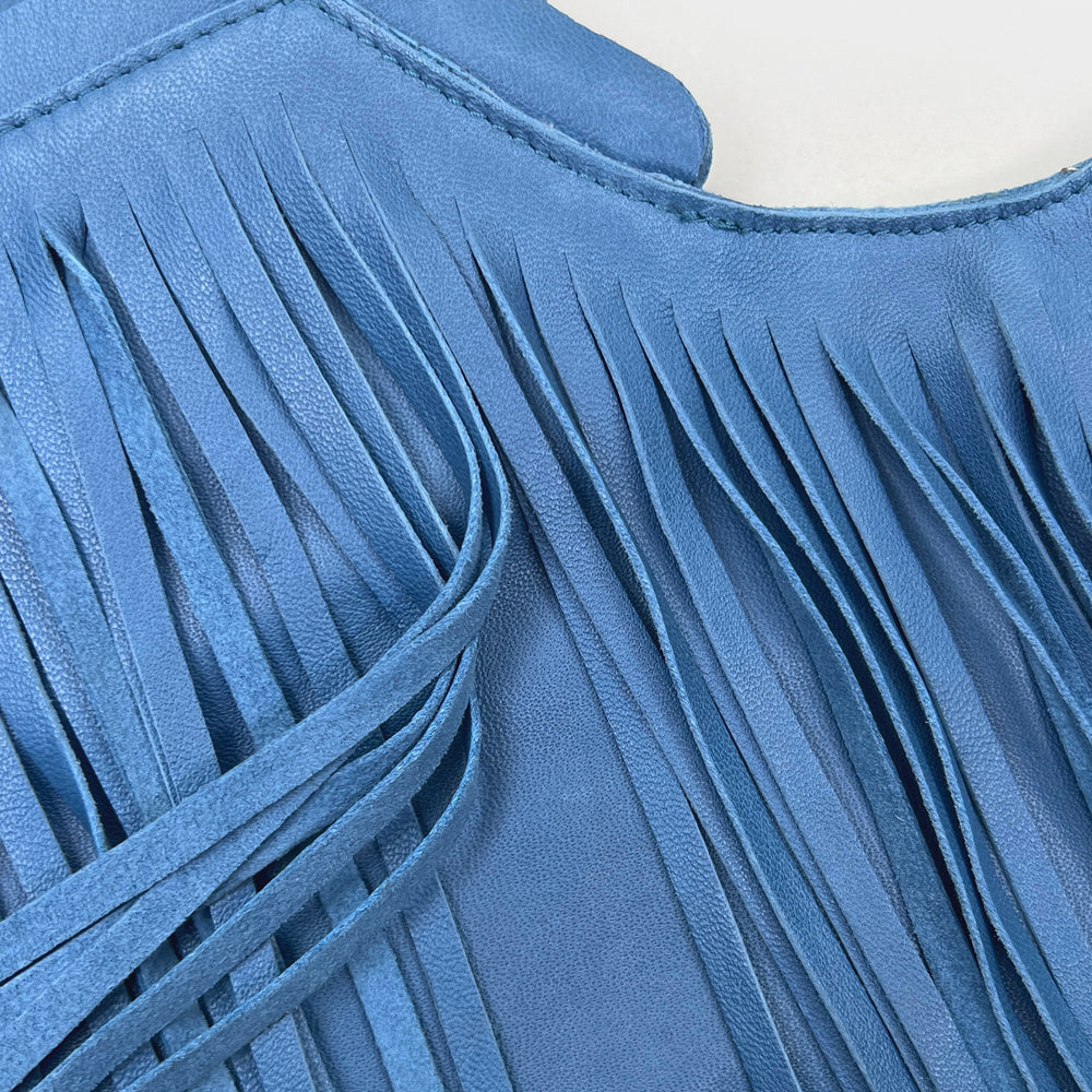 Ceramic Blue Fringe Leather Sash Bag