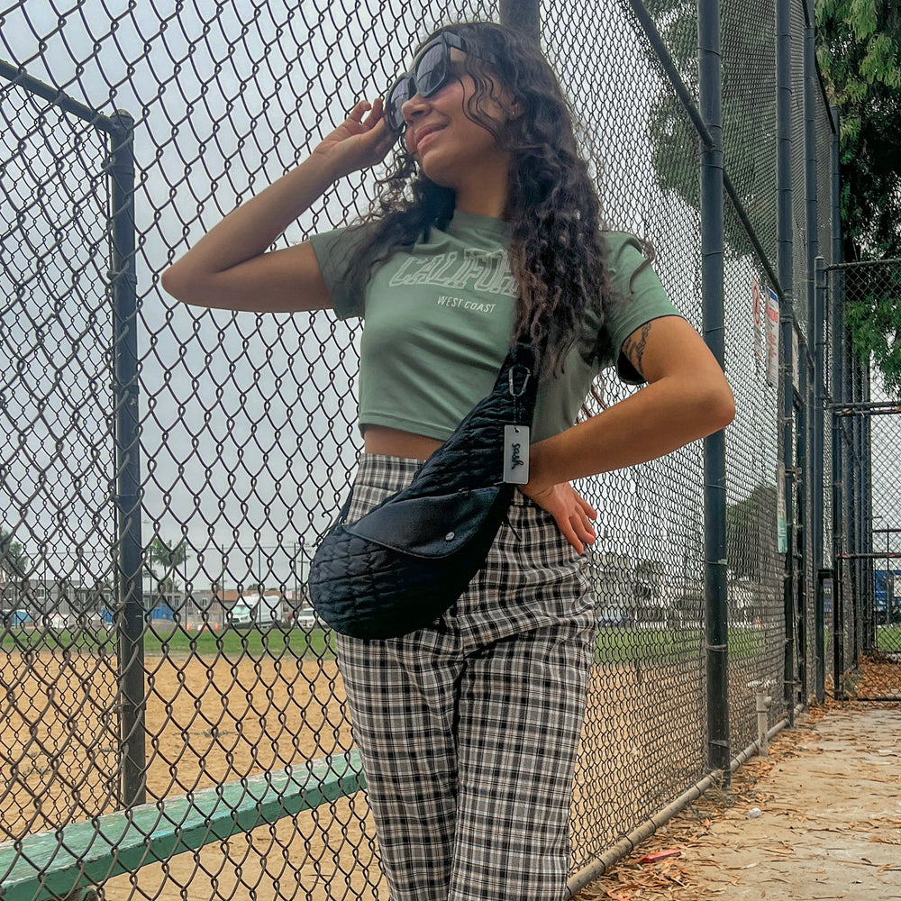 Black Quilted Nylon Half Sash Bag- Left Hip